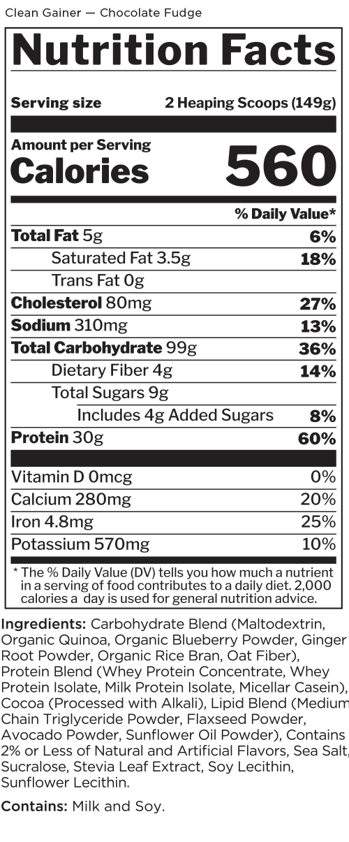 Consume after workouts, between meals, or before bed to boost daily calories and protein. Use Clean Gainer alongside meals—not as a replacement. For best results, use consistently with weight training.