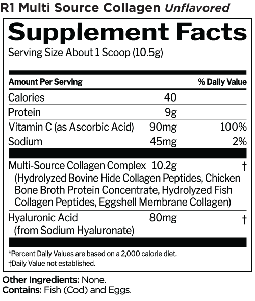 Multi-Source Collagen™ is free of dairy, carbohydrates, sugars, and gluten, as well as artificial flavors, sweeteners, colors, and preservatives.