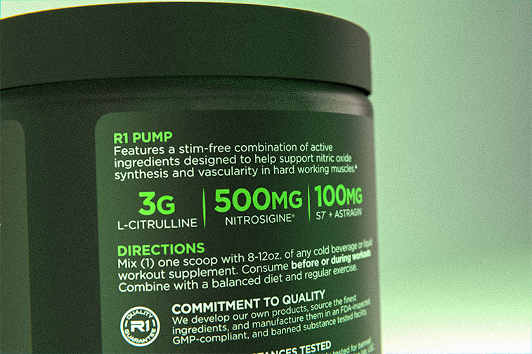 We formulated Pump with a capable combination of ingredients designed to help potentiate the physiological and psychological benefits of a great pump. Pump supports nitric oxide production to help enhance vascularity and size in hard-working muscles. Just add water, then exercise.^